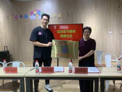 签约仪式现场,厦门南洋职业学院与厦门伊善体育科技有限公司的代表共同签署了合作协议,并为“实训实习基地”揭牌。